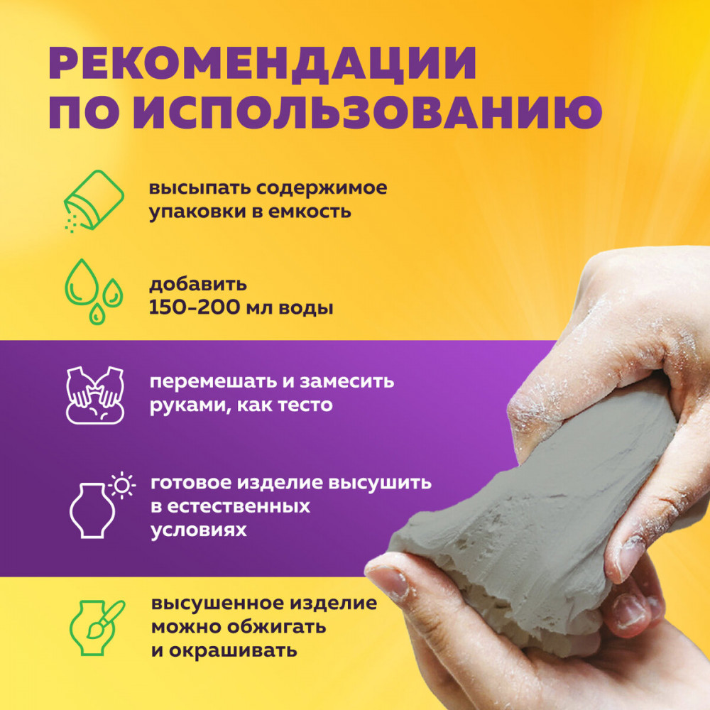 💳 Оплатить за товар можно при получении 🇰🇿 Есть бесплатная доставка по Казахстану от 1 дня 🎁 Копите бонусы с каждой покупки Серия: Hobby Экологически чистая кембрийская глина Brauberg Hobby, добываемая в России на Чкаловском месторождении, идеально подойдет для художественной и скульптурной лепки. Способствует развитию мелкой моторики, творческих способностей и пространственного мышления. Безопасный экологичный продукт, не вызывает аллергической реакции. Глина становится пластичной после добавления воды. Благодаря самозатвердевающему свойству глины изделия из нее сохнут самостоятельно без участия высоких температур. Для придания изделию стабильности рекомендуется обжиг. Глина выполнена в голубом цвете, являющемся наиболее востребованным. Вес — 1 кг. |