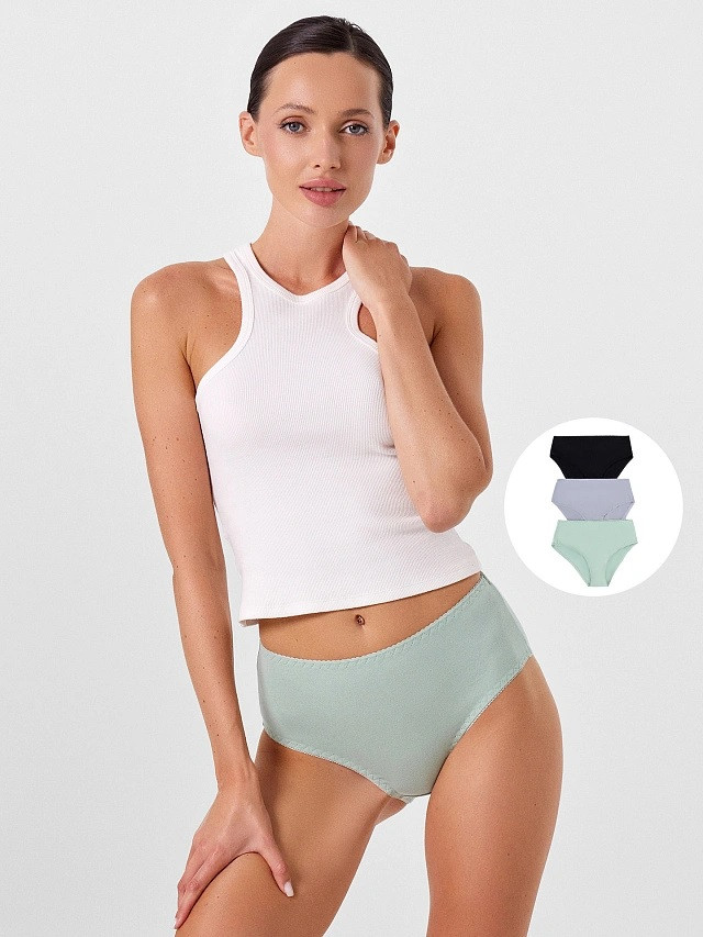 Комфортные женские трусики из трикотажного полотна до линии талии с широким бочком. Трусики продаются мультипаком по три единицы — это удобно, выгодно и практично. Высокая посадка по талии, широкие боковые части и полностью закрытые ягодицы — залог комфортной посадки на фигуре. Отлично подойдут дамам с пышными формами! Натуральный материал высочайшего качества: мягкий, дышащий, гипоаллергенный и долговечный, сохраняет вид даже после многочисленных стирок и обеспечивает чувство полного комфорта на протяжении всего дня. благодаря продуманной анатомичной конструкции, плоским швам и деликатным резиночкам, отлично подходят для повседневной носки и занятий спортом. Пригодятся они и будущим мамам: в этой модели ничего не давит, а значит абсолютно безопасно и комфортно для растущего животика.