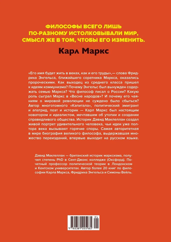 💳 Оплатить за товар можно при получении 🇰🇿 Есть бесплатная доставка по Казахстану от 1 дня 🎁 Копите бонусы с каждой покупки Серия: Персона Имя Карла Маркса с детства знакомо каждому человеку в нашей стране. Его идеи легли в основу Советского государства — марксизм-ленинизм стал официальной идеологией страны. Однако сам Карл Маркс был скромным человеком и не жаждал популярности. «Манифест коммунистической партии» и «Капитал» навсегда изменили историю политической мысли, при этом философ вместе с семьей много лет провел в нищете и умер в безвестности. Ведущий исследователь жизни и идей Маркса, профессор Дэвид Маклеллан создал наиболее полную биографию, которая знакомит нас с трагической судьбой этого великого человека — мыслителя, изгнанника, любящего мужа и верного друга. Его многогранная философия рассказана в этом международном бестселлере столь увлекательно, что не остается сомнений: Карл Маркс по праву считается человеком, изменившим мир. |