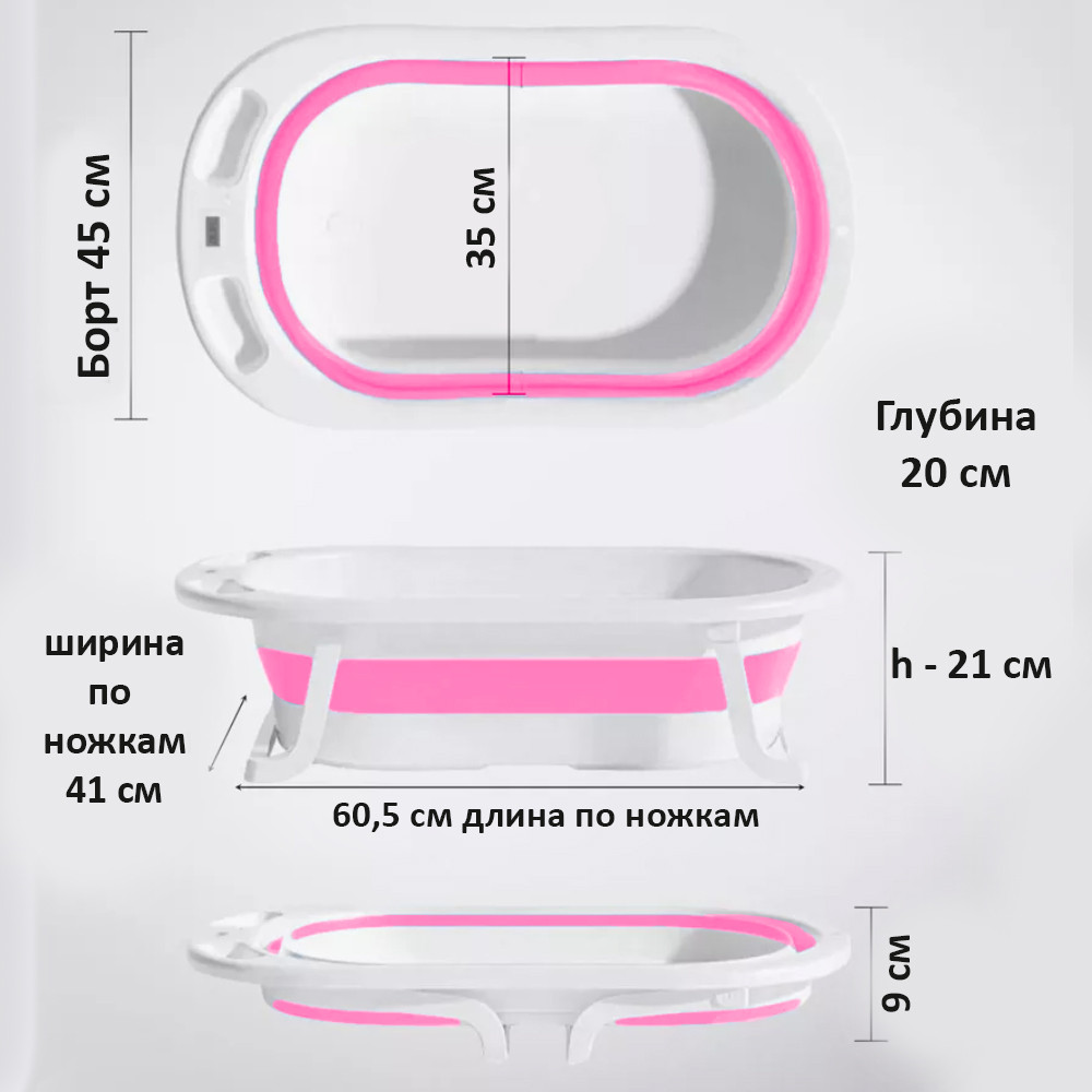 Сама складная часть выполнена из термопластичного эластомера с ресурсом складывания и раскладывания 10000 раз. Материалы гипоаллергенны. Рекомендуем устанавливать ванночку на ровной поверхности. Она легко поместится в большую обычную ванну или душ. Крепкие и устойчивые ножки имеют прорезиненные накладки с анти скользящим покрытием и фиксаторы для защиты от самопроизвольного складывания. Таз для купания компактен, и в сложенном виде экономит место для хранения.