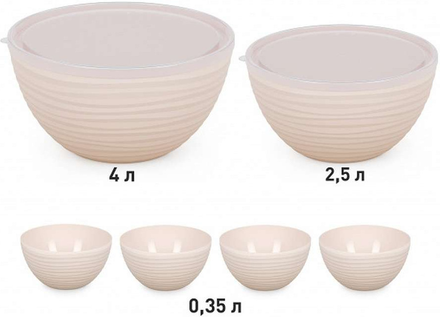 Удобная крышка, плотно прилегающая к чаше, позволит хранить содержимое в холодильнике, благодаря чему оно незаветрится и не просыплется. Важно отметить, что крышка полностью прозрачная, что позволит контролировать количество содержимого в чаше. Такой набор также может выступить в качестве отличного подарка для любой хозяйки на новоселье или день рождения! Набор чаш «Оазис» изготовлен из безопасного пищевого пластика, его можно мыть в посудомоечной машине.