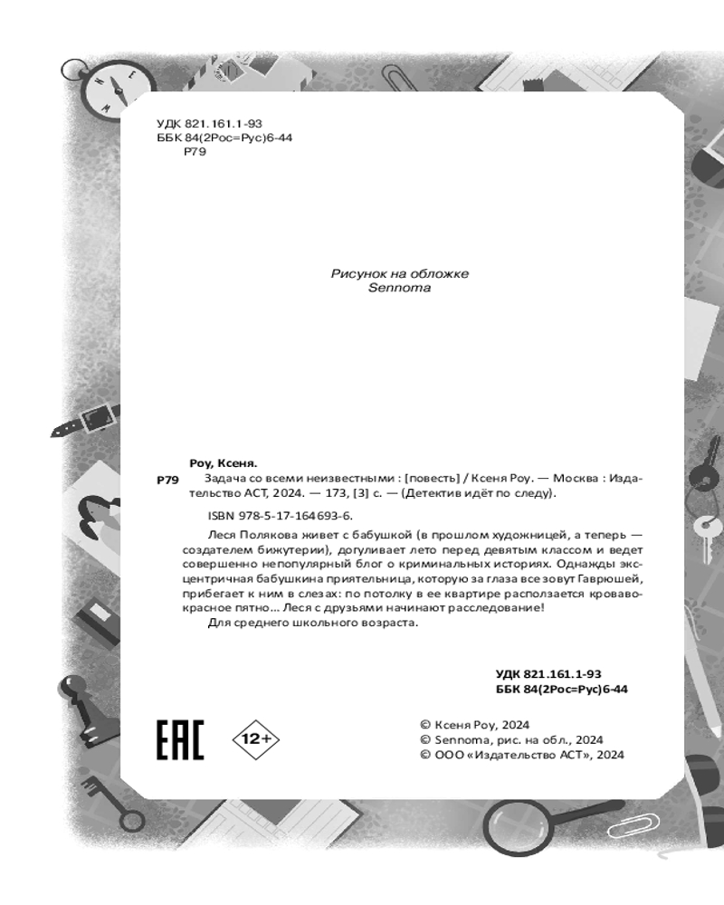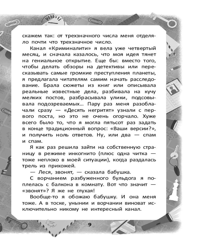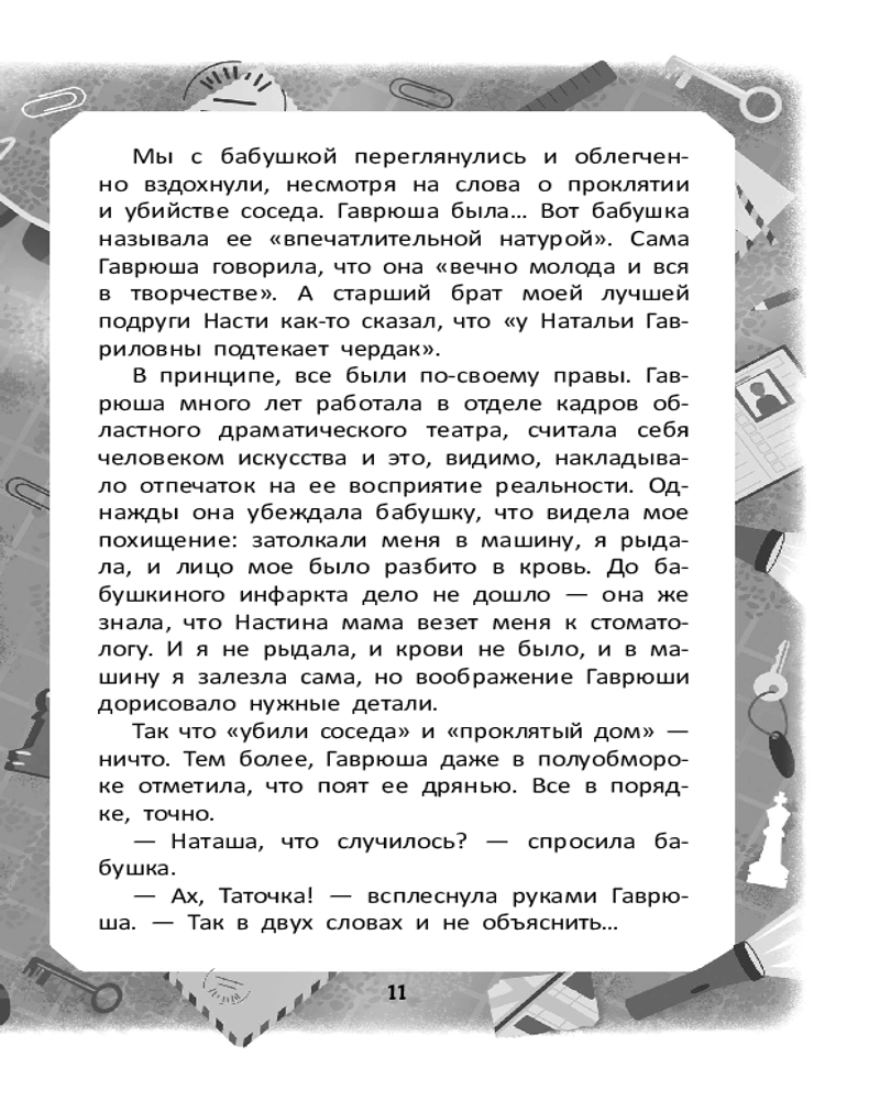 💳 Оплатить за товар можно при получении 🇰🇿 Есть бесплатная доставка по Казахстану от 1 дня 🎁 Копите бонусы с каждой покупки Серия: Детектив идёт по следу Леся Полякова живет с бабушкой (в прошлом художницей, а теперь — создателем бижутерии), догуливает лето перед девятым классом и ведет совершенно непопулярный блог о криминальных историях. Однажды эксцентричная бабушкина приятельница, которую за глаза все зовут Гаврюшей, прибегает к ним в слезах: по потолку в ее квартире расползается кроваво-красное пятно... Леся с друзьями начинают расследование! |