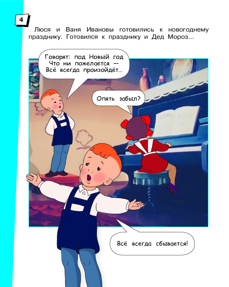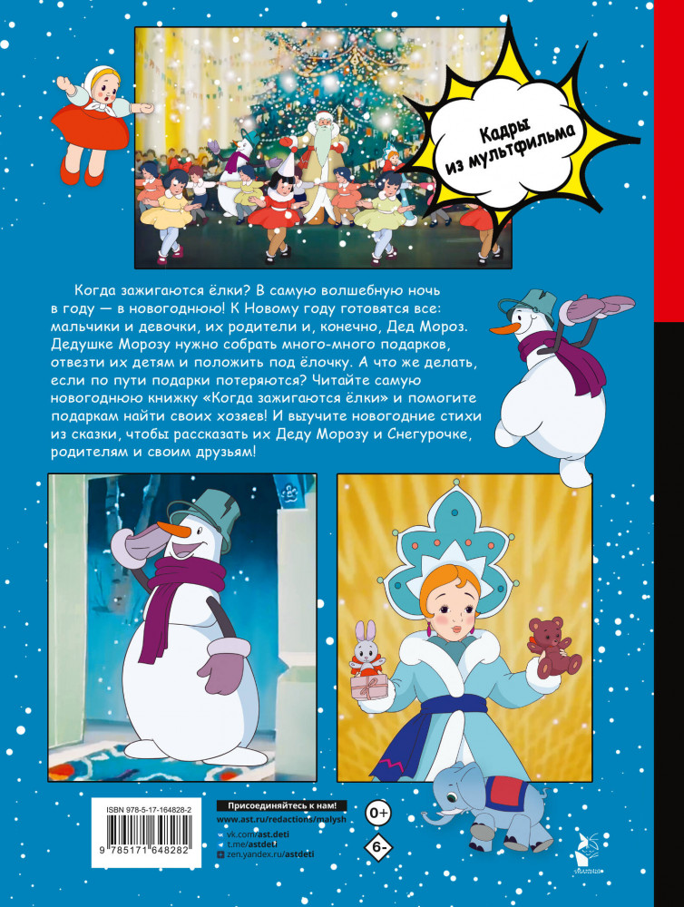💳 Оплатить за товар можно при получении 🇰🇿 Есть бесплатная доставка по Казахстану от 1 дня 🎁 Копите бонусы с каждой покупки Серия: Детские комиксы Окунитесь в атмосферу волшебства с книгой «Когда зажигаются ёлки» по одноимённому мультфильму 1950 года, который получил премию за лучший детский фильм на VII Международном фестивале в 1951 году. Мультфильм снят по сценарию знаменитого сказочника В. Сутеева. В книге кадры из легендарного мультфильма, которые перенесут читателей в гости к Дедушке Морозу и Снегурочке, к Люсе и Ване Ивановым и другим героям этой сказки. В книгу вошли стихотворения М. Вольпина и С. Михалкова. |
