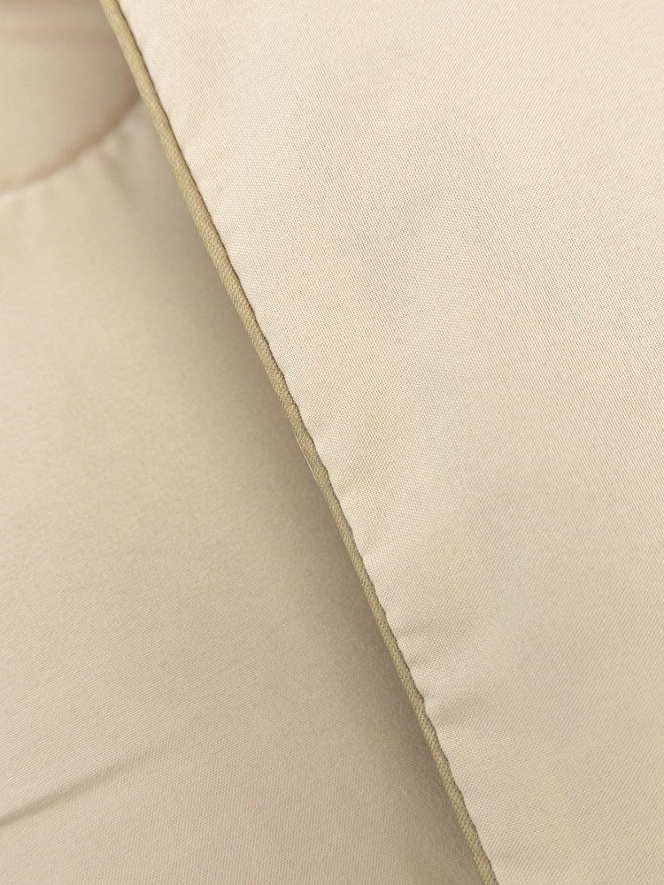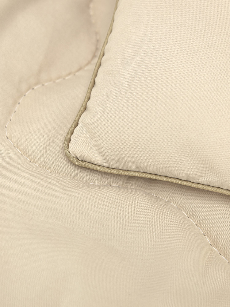 Облегченные одеяла простеганы на одноигольной машине, что придает им особенно пышный вид и объемный край. Одеяла отделаны атласным кантом. В изделия вшита атласная брендированная лента.