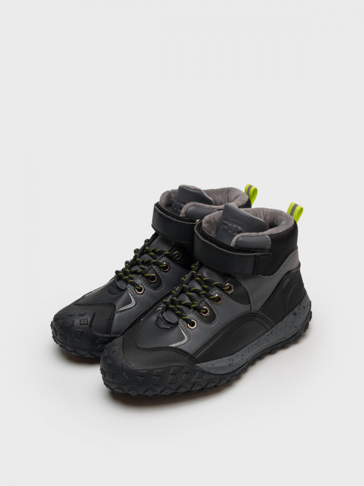 Ботинки демисезонные для мальчика-подростка. Верх обуви выполнен из искусственной кожи, обладающей высокими эксплуатационными свойствами, и мягкого текстиля по верхнему канту. Носочная и пяточная часть усилены специальным защитным материалом. Подкладка и съемная стелька выполнены из войлока с высоким содержанием валеной шерсти 50% и обладают высокими теплозащитными свойствами. Эластичные шнурки + липучка создают удобство при обувании. Эргономичная форма колодки обеспечивает правильное формирование стопы ребенка. Формоустойчивый задник поддерживает стопу в правильном положении. Подошва из термопластичной резины гибкая, не скользит и устойчива к истиранию и имеет защиту носочной части. Рекомендованный температурный режим (зависит от активности ребенка и поддевы под обувь) от +10°С до -5°С. Модель из капсульной коллекции My wave. Соберите полный образ в едином стиле!