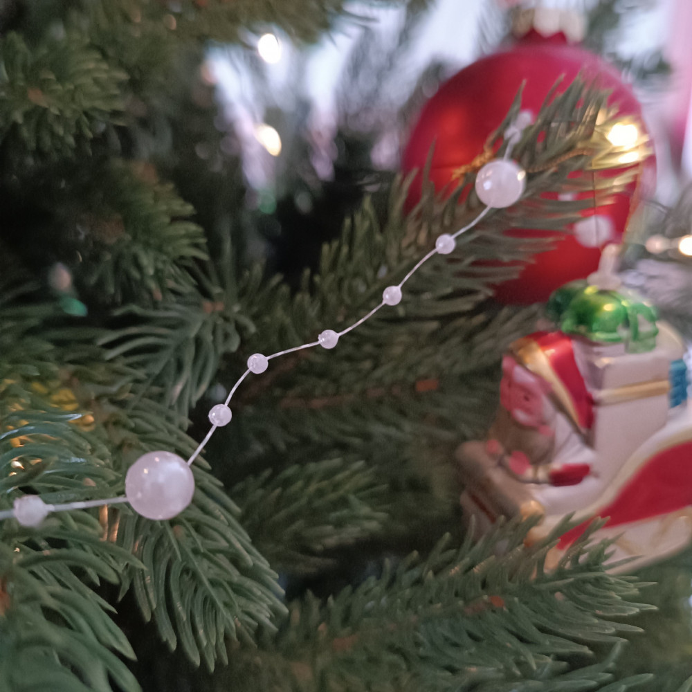 Бусы имеют место быть, хорошая длина, но очень лёгкие и на большой ёлке теряются.