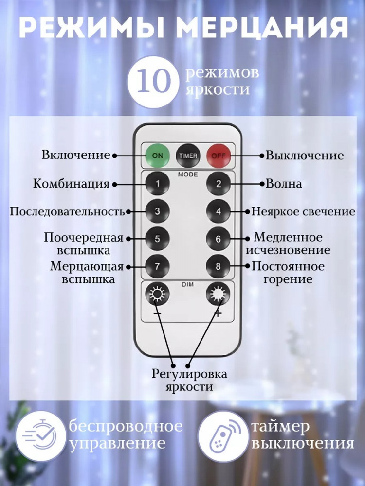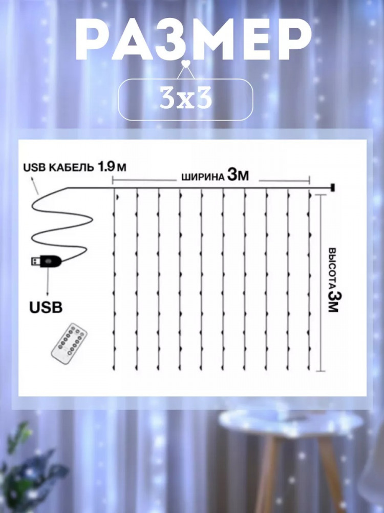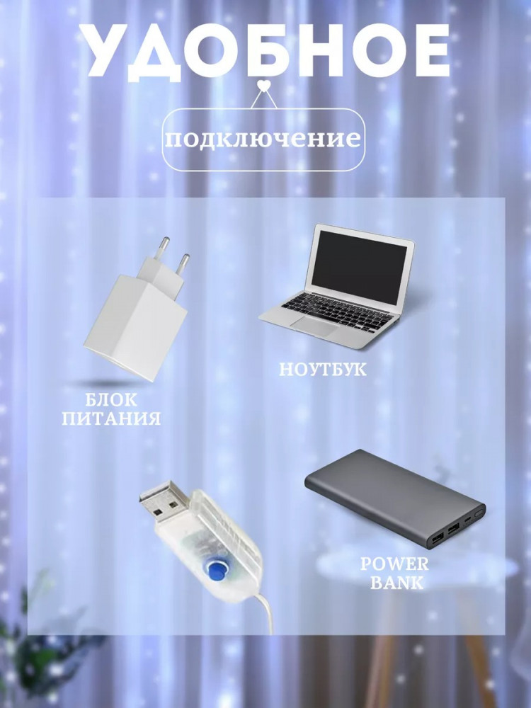 Отличная гирлянда на окно. Есть 10 режимов свечения. Регулировка яркости свечения. Есть таймер. Питание 5v можно подключить от любого зарядного устройства или usb power bank. Рекомендую.