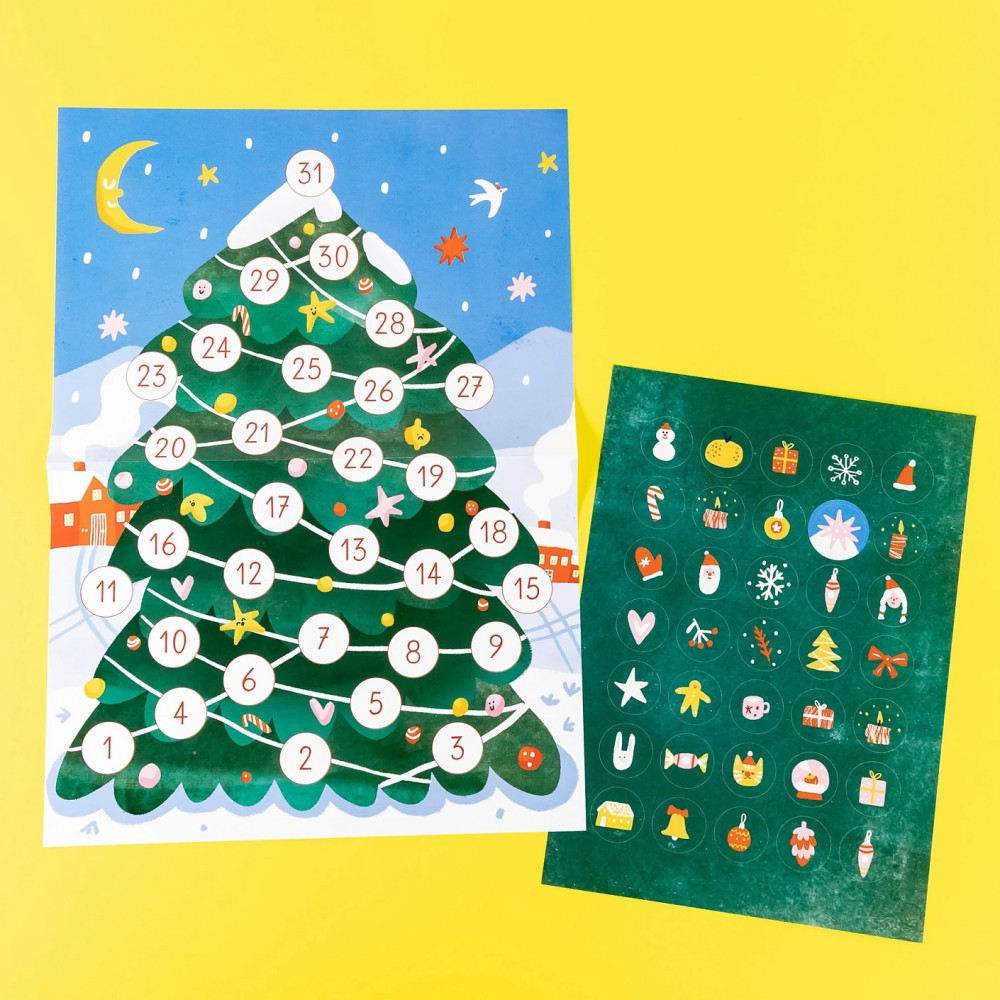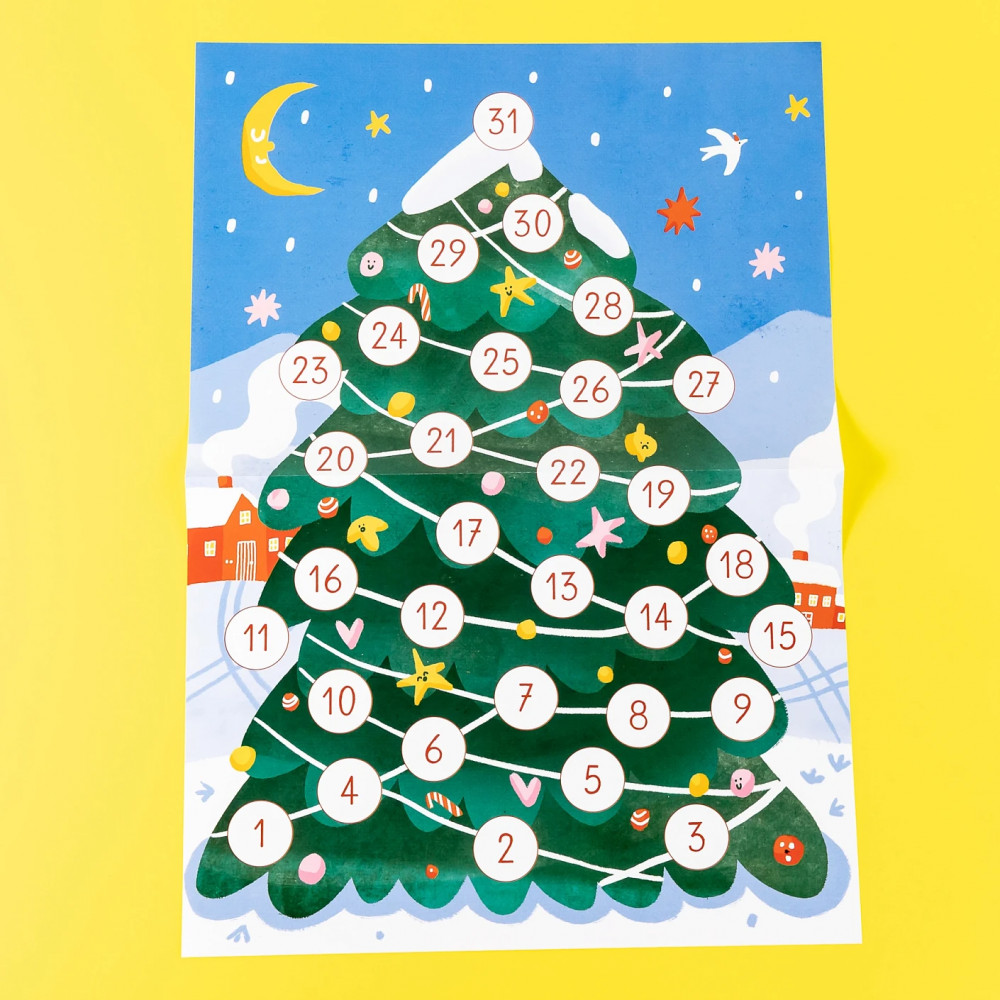 очень хороший календарь, незамороченный, прост в использовании. очень хорошая идея плаката ёлки, на который клеются день за днём наклейки