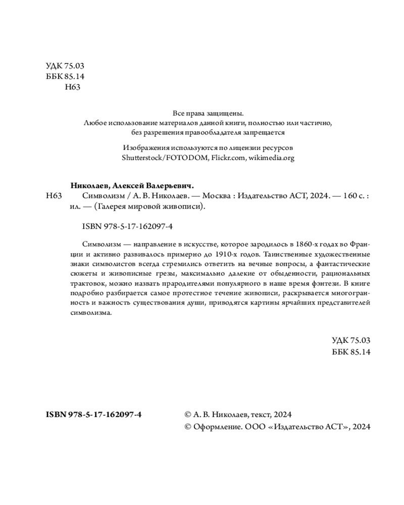 💳 Оплатить за товар можно при получении 🇰🇿 Есть бесплатная доставка по Казахстану от 1 дня 🎁 Копите бонусы с каждой покупки Серия: Галерея мировой живописи Символизм — крупное течение в искусстве, представители которого всегда стремились к новаторству и использовали в своем творчестве символику, недосказанность, таинство образов. В классических работах символистов как нигде показаны жизнь, образ каждой души, ее переживания, смятения, чувства и впечатления. В этой книге подробно разбирается самый загадочный стиль в искусстве, рассматриваются шедевры символизма и их многозначительные тонкие смыслы. |