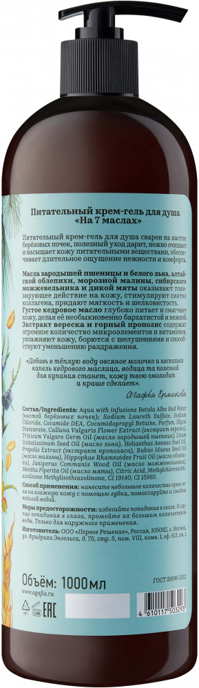 Рецепты Бабушки Агафьи Гель для душа «На 7 маслах»