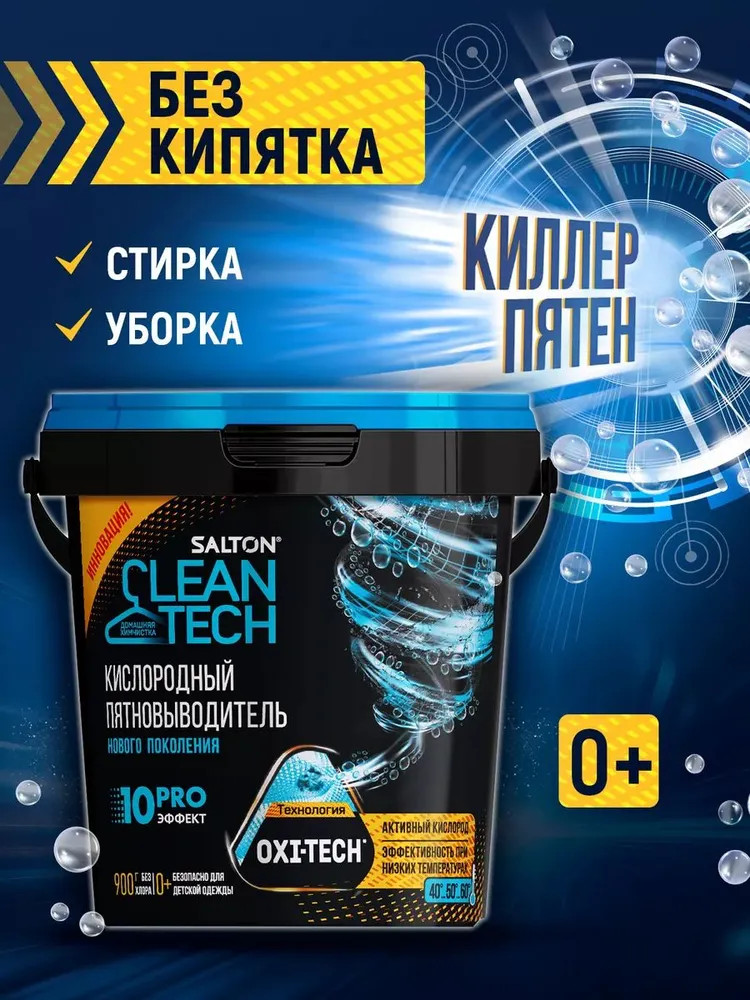 Кислородный пятновыводитель Salton CleanTech подходит для стирки белого и цветного белья из любых тканей, кроме шерсти, шелка, кожи, мембранных тканей. При использовании кислородного порошка как пятновыводителя для цветного белья предварительно проверьте действие средства на незаметном участке изделия! Кислородный пятновыводитель абсолютно безопасен — он не содержит хлор и фосфаты, поэтому применим для стирки детских вещей. Кислородный порошок для белого и цветного белья Salton CleanTech можно также использовать как отбеливатель. Средство легко возвращает белым вещам белоснежность, при этом, в отличие от хлорных отбеливателей, деликатно воздействует на структуру тканей и сохраняет их яркость.