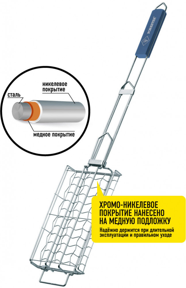 Forester Решетка-гриль с телескопической ручкойВ данный момент этот товар отсутствует в продаже. Возможно, у нас найдется аналогичный или похожий товар здесь. Решётка-гриль с телескопической ручкой для сосисок, колбасок, сэндвичей, бутербродов. Решётка предназначена для приготовления продуктов на углях. Длинная телескопическая ручка позволяет находиться дальше от огня, и дает возможность использовать решетку в том числе детям. Благодаря размеру решётка-гриль Forester идеально подходит для большинства грилей и позволяет легко готовить несколько блюд одновременно. |