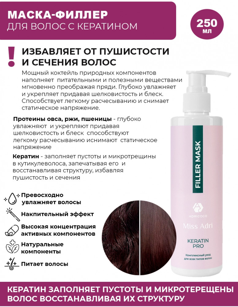 Отзывы «Маска-филлер для волос с кератином «Мiss adri keratin pro»»