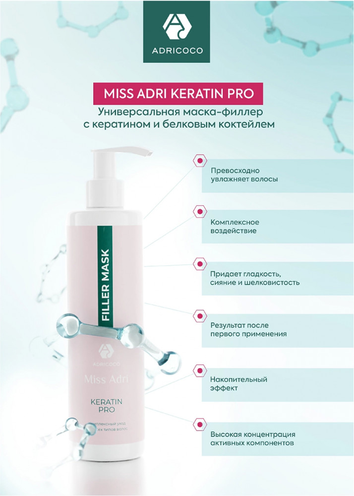 Маска-филлер для волос с кератином «Мiss adri keratin pro» | Adricoco