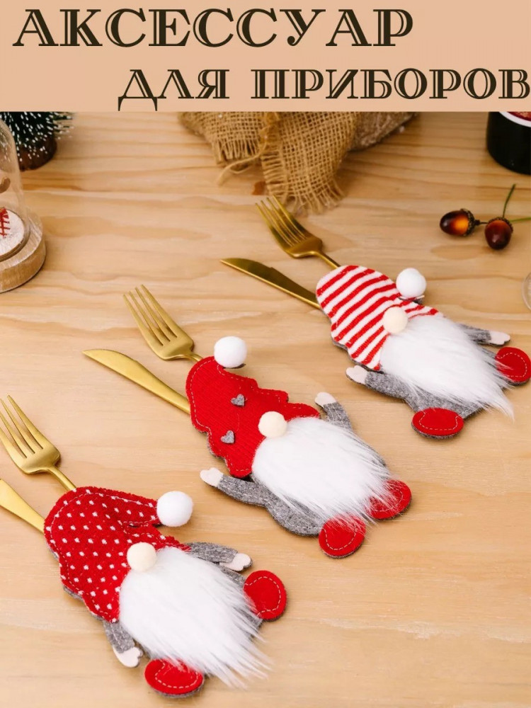 Набор новогодних кармашков для приборовВ данный момент этот товар отсутствует в продаже. Возможно, у нас найдется аналогичный или похожий товар здесь. Серия: New Year 25 Новогодний чехол для столовых приборов на праздничный стол будет прекрасным украшением для вашего стола на новогодние праздники! Салфетки для столовых приборов, конверт новогодний в форме гномика очень красиво смотрятся на праздничном столе и является атрибутом Нового года, что будет повышать атмосферу праздника в вашем доме! Комплект для столовых приборов, из качественного материала, можно использовать как на столовые приборы, так и на бутылки на вашем праздничном столе.Чтобы украсить новогодний стол и создать приятную атмосферу праздника — используйте для идеи декора наши чудные и милые конверты для украшения новогоднего стола. Прекрасно украсят Ваш вкусный, праздничный, новогодний стол и удивят гостей Вашим оригинальным подходом и чудесной задумкой. |