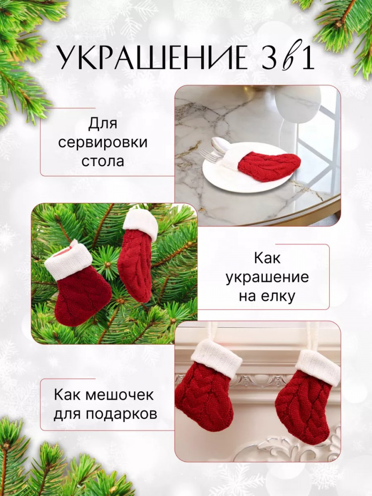 Очень милые конвертики для сервировки новогоднего стола. Мягкие, внутри носочков ткань типа болоньи, удобно, если вдруг испачканы.