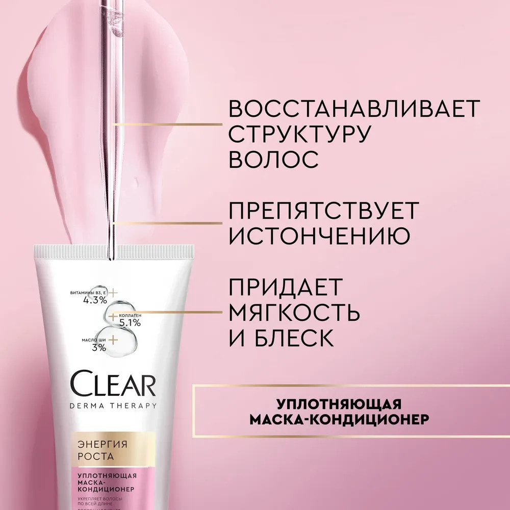 Маска-кондиционер: Aqua, Cetearyl Alcohol, Dimethiconol, Stearamidopropyl Dimethylamine, Parfum, Butyrospermum Parkii (Shea) Butter, Glycerin, Hydrolyzed Collagen, Niacinamide, Tocopheryl Acetate, Behentrimonium Chloride, Dipropylene Glycol, Disodium EDTA, Lactic Acid, Magnesium Nitrate, Methylchloroisothiazolinone, Methylisothiazolinone, Phenoxyethanol, Sodium Chloride, TEA-Dodecylbenzenesulfonate, Benzyl Salicylate, Linalool, CI 14720.
