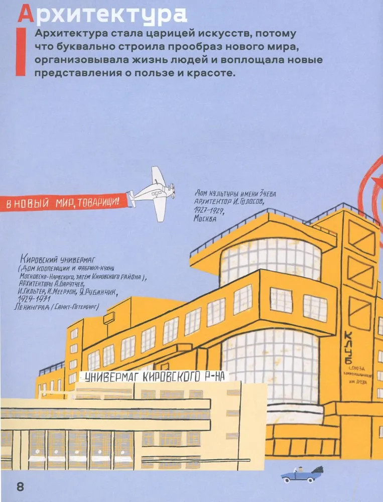 💳 Оплатить за товар можно при получении 🇰🇿 Есть бесплатная доставка по Казахстану 🎁 Копите бонусы с каждой покупки Эта книга — о короткой, но очень яркой эпохе в истории мировой культуры, эпохе конструктивизма. Охватившие людей мечты о рождении нового мира подошли тогда очень близко к реальности и создали целую страну. Новое искусство, новый быт, новая архитектура, новые книги, новые люди — грандиозное обновление привело к рождению современного, узнаваемого сегодня облика городов, музеев, книг и окружающих нас вещей. Поэтому на страницах этого иллюстрированного путеводителя молодой читатель встретит много удивительного, но и много знакомого — и страна мечты столетней давности покажется ему не такой далёкой. Дарья Филиппова, Генеральный директор Центра «Зотов» |