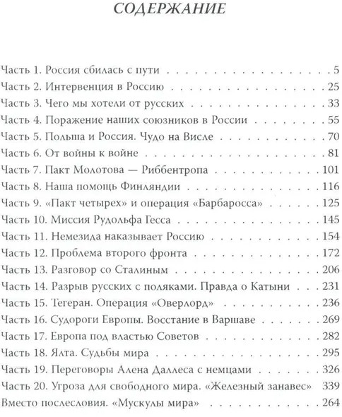 Кроме того, в ней рассказывается о политике Черчилля в годы Второй мировой войны, когда союзническая помощь Советскому Союзу сопровождалась стремлением затянуть военные действия на Восточном фронте, чтобы обескровить СССР. Наконец, здесь говорится о начале «холодной войны», в которой У. Черчилль сыграл ведущую роль.