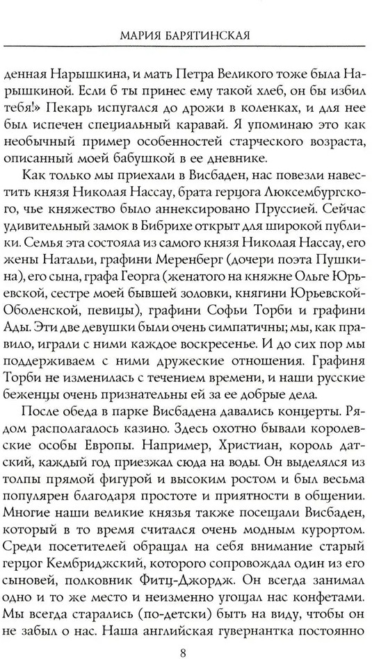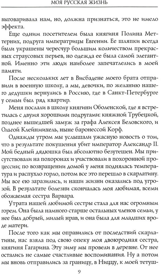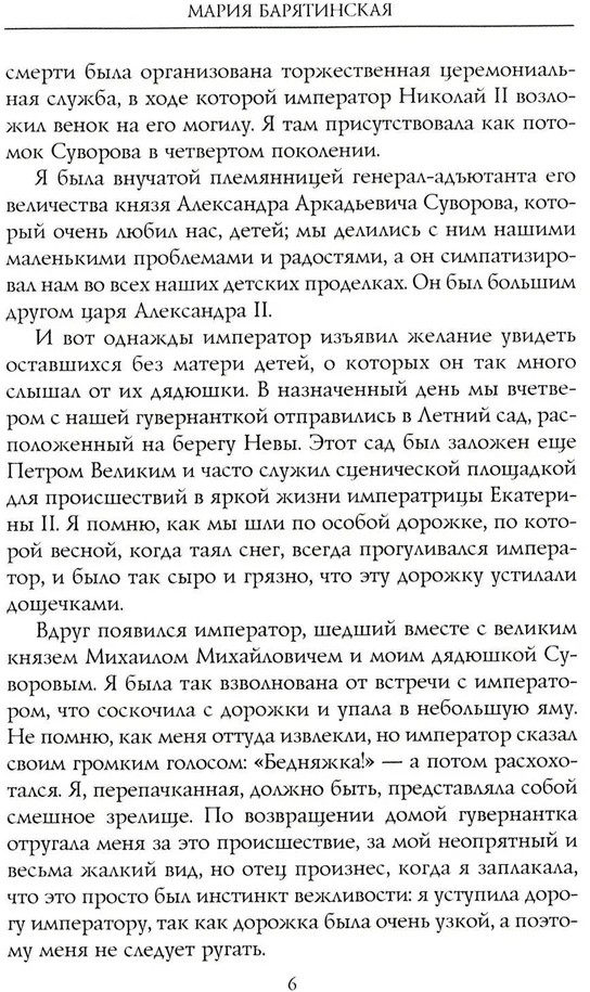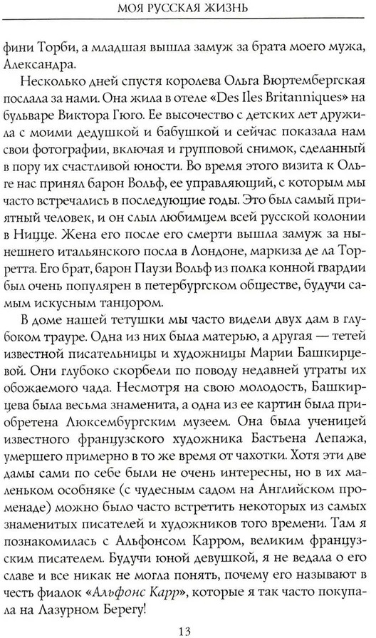 Моя русская жизнь. Воспоминания великосветской дамы, жены флигель-адъютанта Николая IIВ данный момент этот товар отсутствует в продаже. Возможно, у нас найдется аналогичный или похожий товар здесь. Мемуары великосветской дамы Марии Сергеевны Барятинской, праправнучки фельдмаршала Суворова, жены флигель-адъютанта Николая II, Анатолия Барятинского, в мельчайших деталях восстанавливают тонкости придворного этикета и церемониала. Она вспоминает торжественность коронации и празднования 300-летия Дома Романовых, Европу начала века. Барятинская начинает повествование с описания смерти Александра III и восшествия на престол Николая II, рассказывает о Распутине и убийстве Столыпина, начале войны и о том, как организовывала работу военного госпиталя в Киеве. Мария Сергеевна бережно сохраняла записи о важных и мимолетных происшествиях, ценнейшие свидетельства, полные неповторимого очарования утерянного рая. |