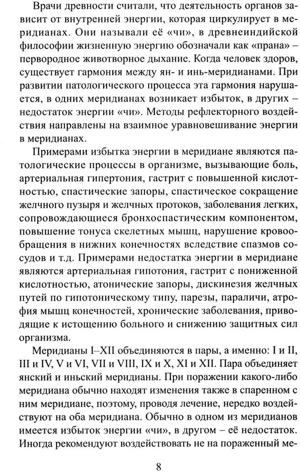 💳 Оплатить за товар можно при получении 🇰🇿 Есть бесплатная доставка по Казахстану от 1 дня 🎁 Копите бонусы с каждой покупки В книге представлены данные о биологически активных точках и меридианах. Учение о двух противоположных началах инь и ян составляет мировоззренческую основу древней китайской медицины. Врачи древности считали, что деятельность органов зависит от внутренней энергии, которая циркулирует в меридианах. Когда человек здоров, существует гармонизация между меридианами инь и ян. При развитии патологического процесса эта гармония нарушается, в одних меридианах возникает избыток, в других — недостаток энергии «чи». Методы рефлекторного воздействия (иглоукалывание, прижигание, точечный массаж) направлены на выравнивание тока энергии в меридианах. |