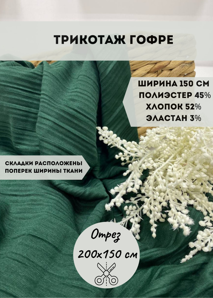 Трикотажная ткань «Гофре» зеленый, плотность 260 гр, отрез 2 метра