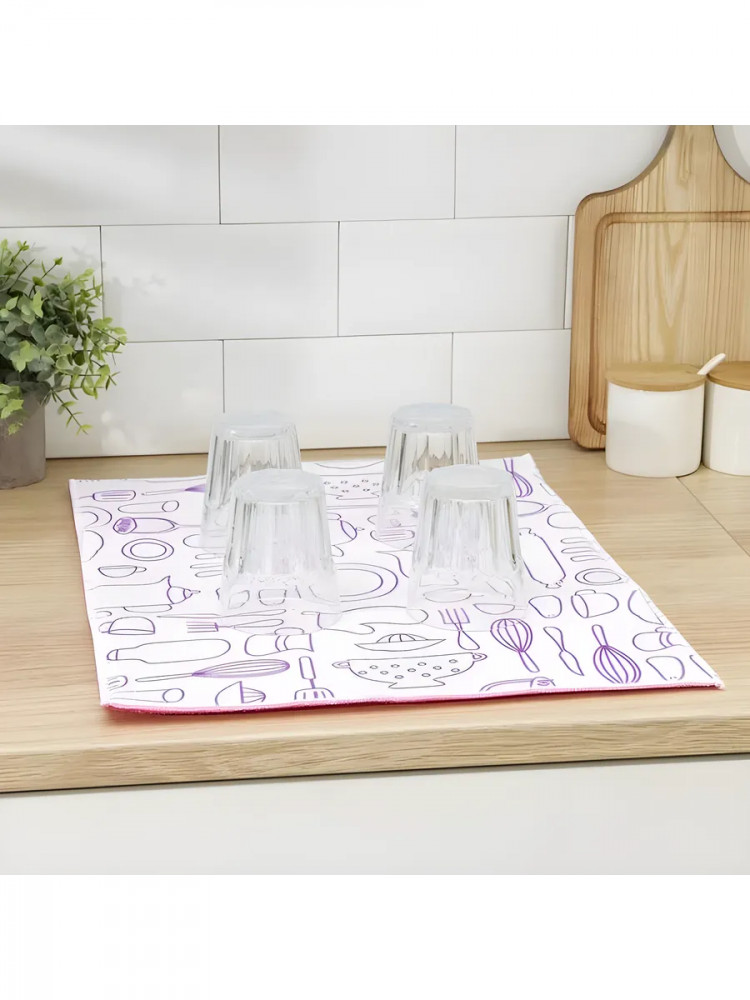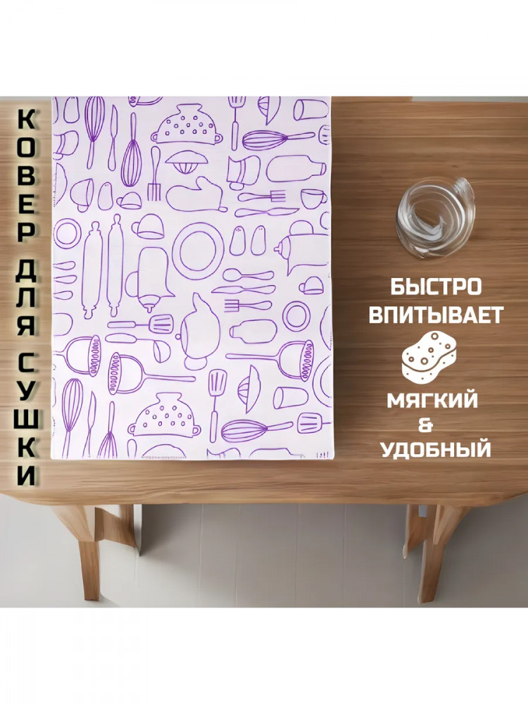 Мягкий и приятный на ощупь материал обеспечивает бережный уход за вашей посудой, включая деликатные предметы из стекла и фарфора. Коврик сохраняет форму и цвет даже после многократного использования и стирок, что делает его долговечным и простым в уходе.