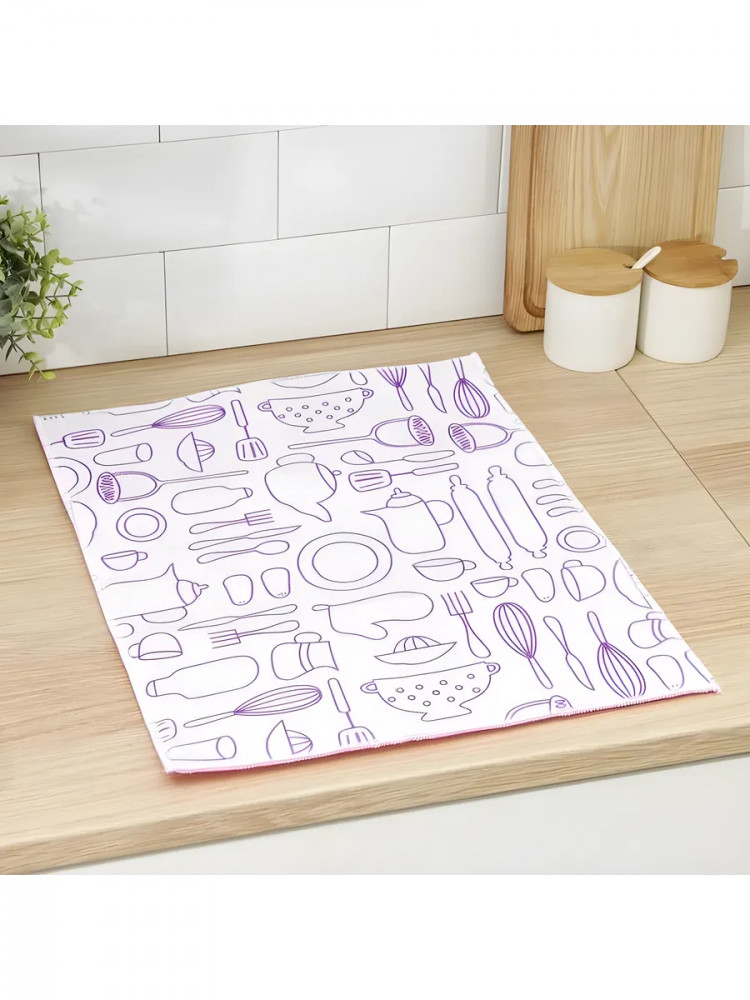 Коврик для сушки посуды, произведенный в Китае, изготовлен из качественной микрофибры и хлопка, что обеспечивает высокую впитывающую способность и долговечность. Этот прямоугольный коврик размерами 43 × 35 см идеально подходит для эффективной сушки посуды после мытья, предотвращая образование луж на кухонной поверхности.