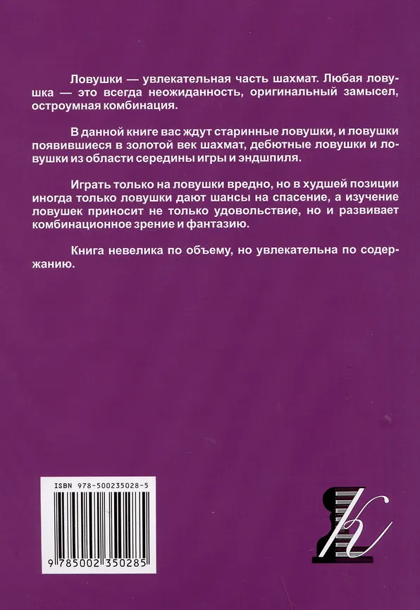 💳 Оплатить за товар можно при получении 🇰🇿 Есть бесплатная доставка по Казахстану от 1 дня 🎁 Копите бонусы с каждой покупки Ловушки — увлекательная часть шахмат. Любая ловушка — это всегда неожиданность, оригинальный замысел, остроумная комбинация. В данной книге вас ждут старинные ловушки, и ловушки, появившиеся в золотой век шахмат, дебютные ловушки и ловушки из области середины игры и эндшпиля. Играть только на ловушки вредно, но в худшей позиции иногда только ловушки дают шансы на спасение, а изучение ловушек приносит не только удовольствие, но и развивает комбинационное зрение и фантазию. Книга невелика по объему, но увлекательна по содержанию. Для широкого круга любителей шахмат. |