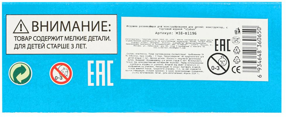 SLUBAN Конструктор «Экскаватор с фигуркой»-30% +285