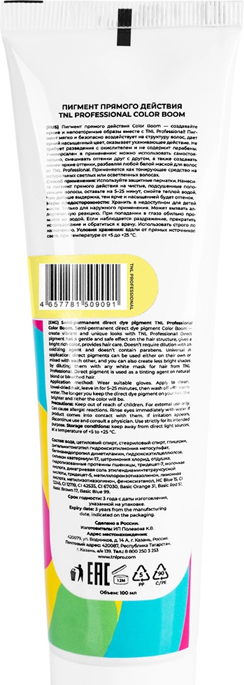 TNL Professional Пигмент прямого действия для волос «Color boom», оттенок Неоновый желтый