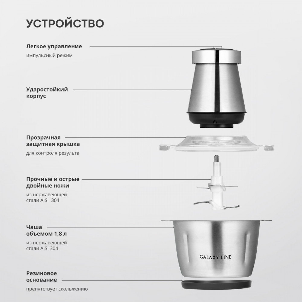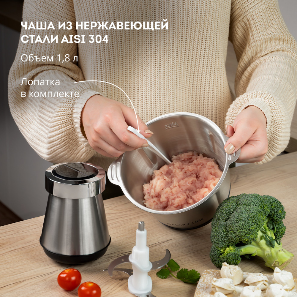 Galaxy Чоппер электрический GL2380В данный момент этот товар отсутствует в продаже. Возможно, у нас найдется аналогичный или похожий товар здесь. Измельчитель кухонный электрический Galaxy Line GL2380 — многофункциональный прибор, сочетающий в себе функции нарезки и измельчения. Приготовление вкусных супов, свежих салатов гарниров и соблазнительных десертов станет быстрым и легким занятием с кухонными чопперами Galaxy Line! Прочные и острые двойные ножи с четырьмя лезвиями из нержавеющей стали эффективно и быстро измельчает продукты. Такие ножи сохраняют свою остроту долгое время, не деформируются, легко моются, устойчивы к коррозии и воздействию солей даже при длительном использовании. Прочная чаша изготовлена из особой марки нержавеющей стали AISI 304, которая устойчива к коррозии и воздействию солей, а также препятствует размножению микробов. Объем чаши — 1,8 л позволяет измельчить большое количество продуктов. Высокая мощность 500 Вт, 2 скорости и импульсный режим делают процесс приготовления быстрым и удобным. Резиновое основание препятствует скольжению, надежно фиксирует чоппер-измельчитель на рабочей поверхности. Позвольте себе новые технологии Galaxy Line для абсолютного комфорта! Готовьте с удовольствием вместе с Galaxy Line! |