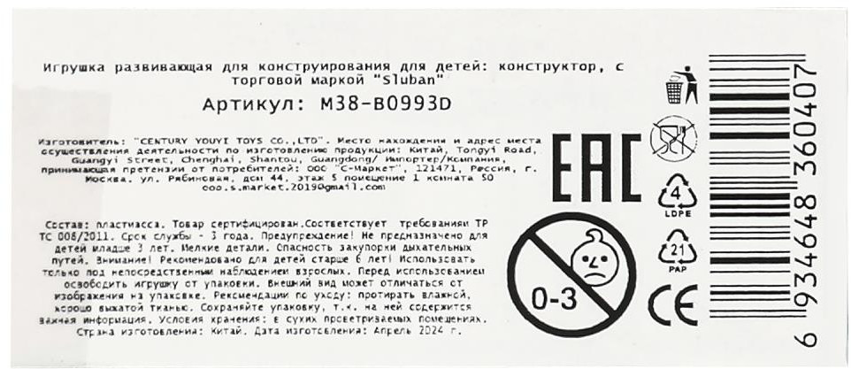SLUBAN Конструктор «Машина-пиццерия с фигуркой»-35% +174