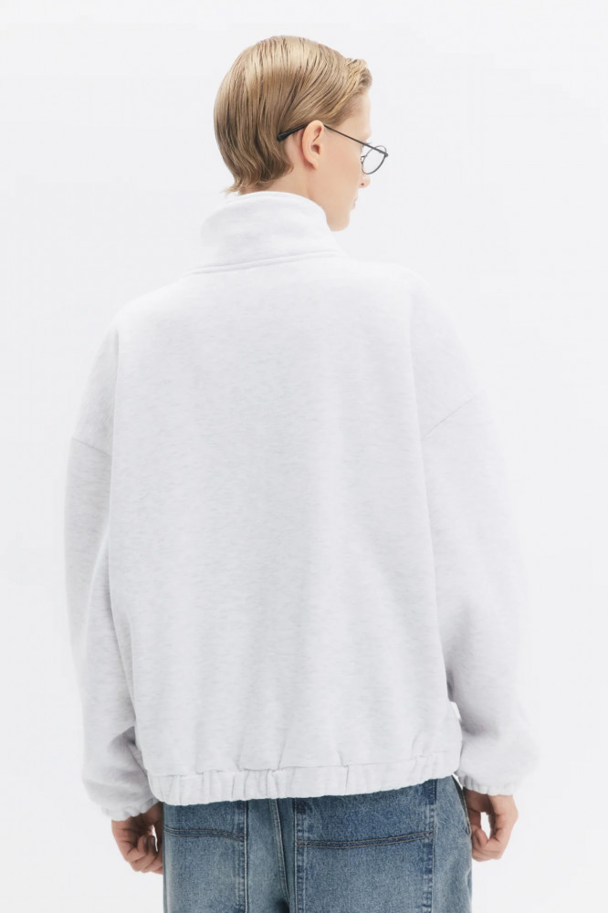 Женское худи свободного кроя oversize из мягкого, приятного к телу футера на основе хлопка с начесом. Высокий воротник-стойка, который при желании можно носить как отложной воротничок с V-образным вырезом. Накладные карманы-кенгуру по бокам. Длинные свободные рукава с эластичными манжетами и спущенной линией плеча. Застежка на молнию с двойным бегунком. Присборенный нижний край на эластичной резинке.