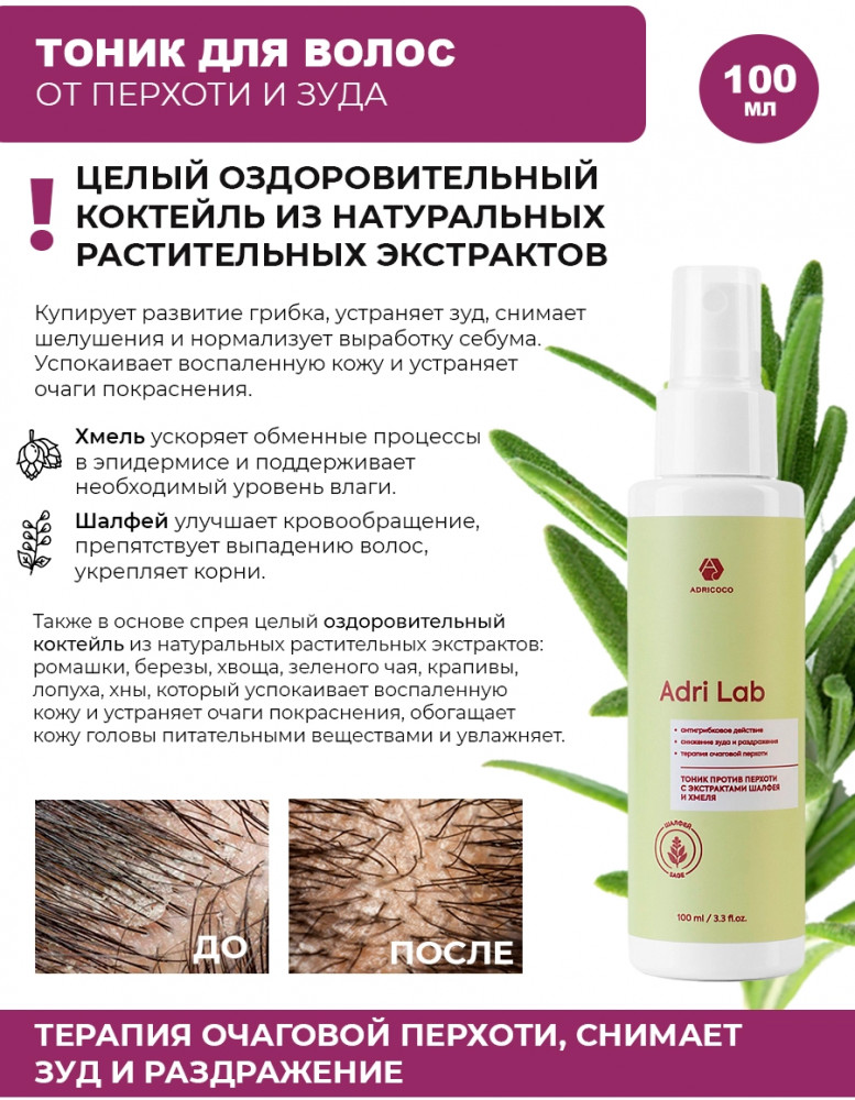 | Adricoco Тоник для волос против перхоти «Adri Lab»