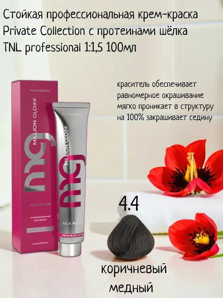 TNL Professional Крем-краска для волос с протеинами шёлка, оттенок 4.4 Коричневый медный