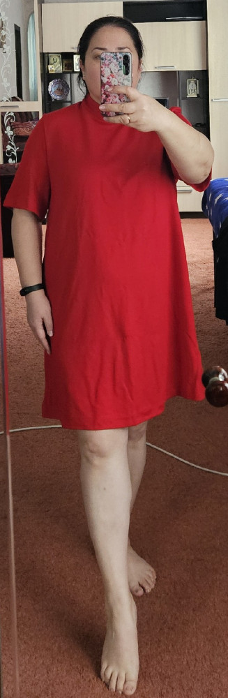 отличное трикотажное платье, трикотаж плотный, на лето будет жарковато, пошито без нареканий, село неплохо, большемерит, заявлено ог- 100, на самом деле 110, поэтому, как оверсайс, в целом отличное приобретение в гардероб