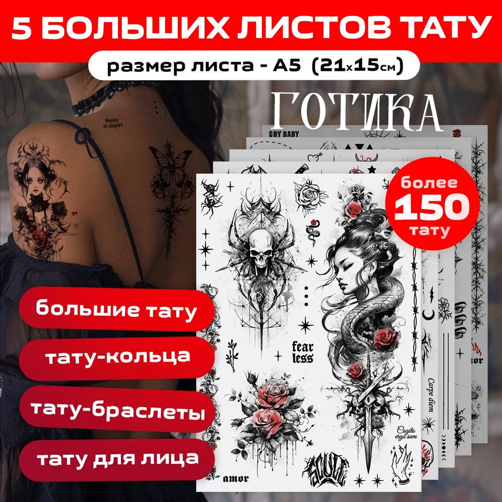💳 Оплатить за товар можно при получении 🇰🇿 Есть бесплатная доставка по Казахстану от 1 дня 🎁 Копите бонусы с каждой покупки Новые большие наборы тату от бренда Pink из 5 листов размером А5 предоставляют бесконечные возможности для творчества. Уникальные тату наборы представлены в 6 разных стилях: фэнтези, цветы, минимализм, готика, восток и аниме. Необычные, детально прорисованные эскизы доставят Вам эстетическое удовольствие! |