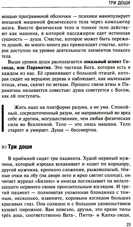 💳 Оплатить за товар можно при получении 🇰🇿 Есть бесплатная доставка по Казахстану от 1 дня 🎁 Копите бонусы с каждой покупки Серия: Инструкция по использованию жизни Если ты ищешь альтернативу западной медицине, обратись к Аюрведе: это наука не о болезнях — это наука о Жизни. Применение этой древней медицинской системы даёт фантастические результаты. Она не обходит вниманием повседневную жизнь, питание, психологические отношения, карьеру, состояние духа и, наконец, применение целебных растений. Очень важно то, что с точки зрения Аюрведы в книге описаны не только индийские растения, но и лекарственные травы средних широт, так что любой россиянин без «зелёного лекарства» не останется! |