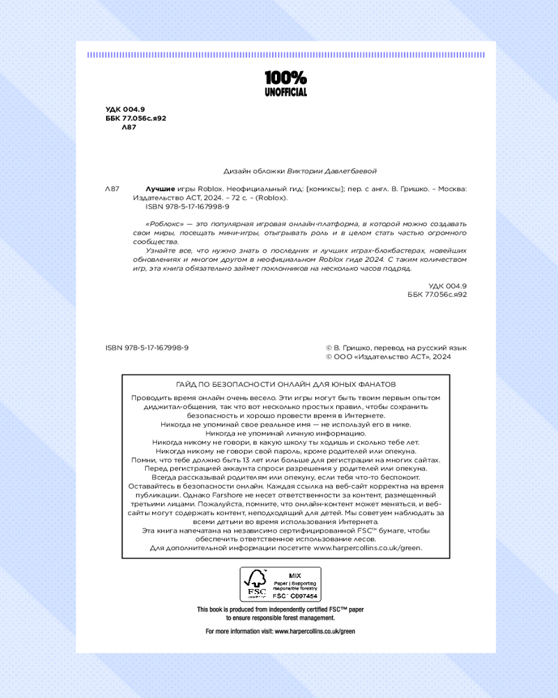 💳 Оплатить за товар можно при получении 🇰🇿 Есть бесплатная доставка по Казахстану от 1 дня 🎁 Копите бонусы с каждой покупки Серия: Roblox «Роблокс» — это популярная игровая онлайн-платформа, в которой можно создавать свои миры, посещать мини-игры, отыгрывать роль и в целом стать частью огромного сообщества. Узнайте все, что нужно знать о последних и лучших играх-блокбастерах, новейших обновлениях и многом другом в неофициальном Roblox гиде 2024. С таким количеством игр, эта книга обязательно займет поклонников на несколько часов подряд. |