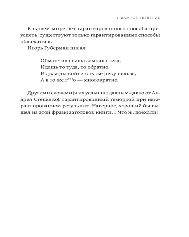 В нашем мире нет гарантированного метода преуспеть, существуют только гарантированные методы облажаться. Однако многие вещи (особенно когда дело касается того, что находится в нашем уме) не управляются одним лишь нашим желанием. И, как будет показано ближе к концу книги, далеко не всегда это плохо.