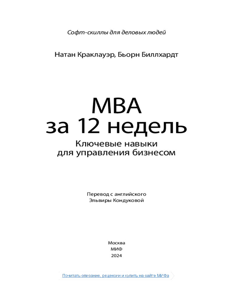 💳 Оплатить за товар можно при получении 🇰🇿 Есть бесплатная доставка по Казахстану от 1 дня 🎁 Копите бонусы с каждой покупки Серия: Софт-скиллы для деловых людей 12-недельный курс МВА от бизнес-практиков Бьорна Биллхардта и Натана Краклауэра. |