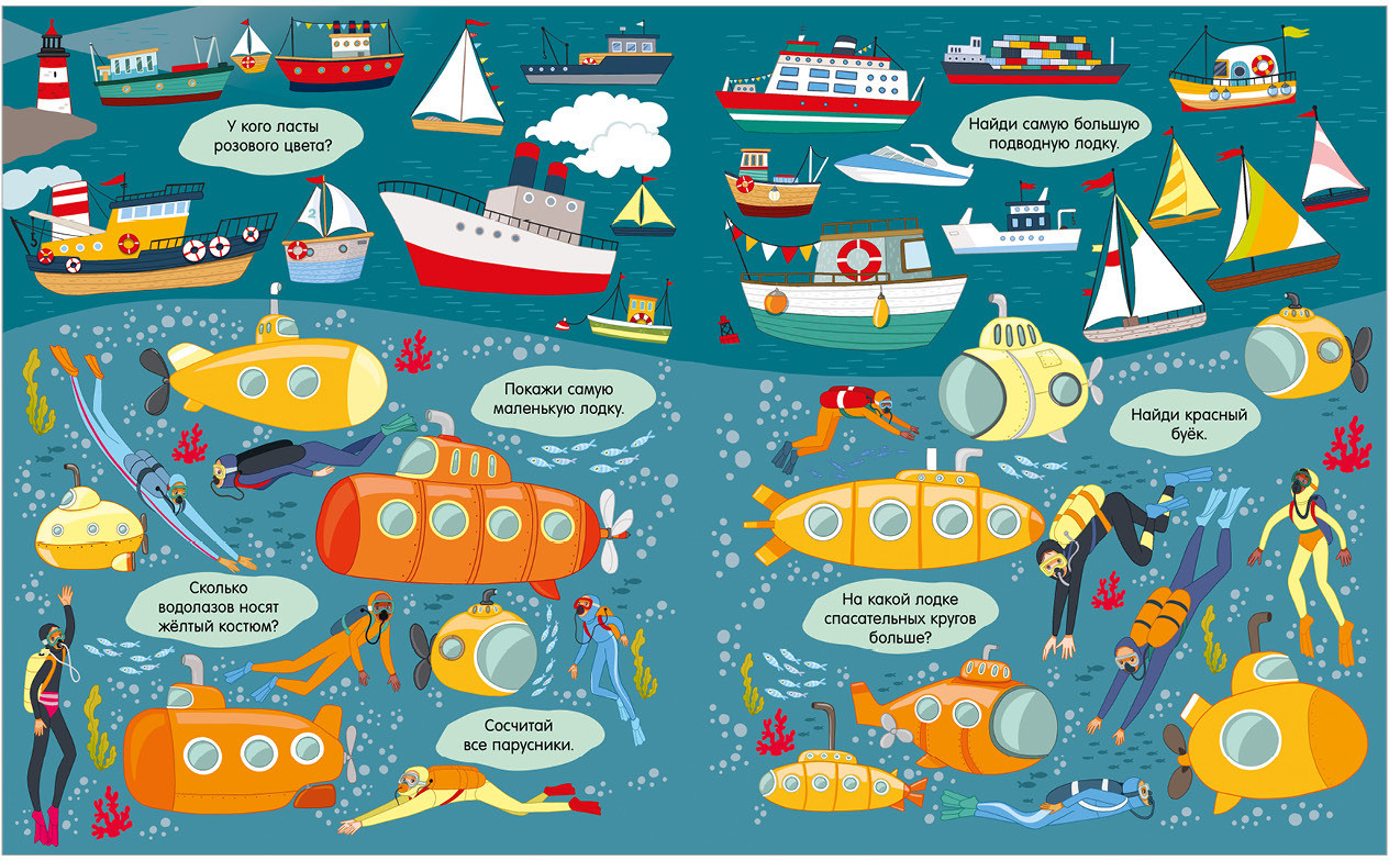 Детальные картинки интересно разглядывать, можно придумывать к ним истории или искать спрятанные на страницах предметы. А особенно интересно знакомиться с новыми понятиями и словами. Каждый раз открывая книгу, ребенок будет находить все новые и новые детали.