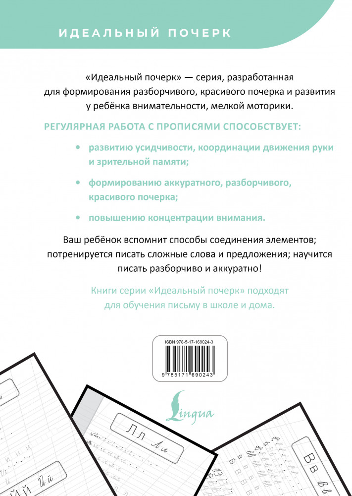 💳 Оплатить за товар можно при получении 🇰🇿 Есть бесплатная доставка по Казахстану от 1 дня 🎁 Копите бонусы с каждой покупки Серия: Идеальный почерк Неразборчивый почерк, неправильное написание элементов и частые пропуски букв — эти и другие трудности часто встречаются у младших школьников. Данное издание поможет ребёнку запомнить правильное написание элементов букв и сформировать красивый, аккуратный почерк. В пособии представлены буквы русского алфавита со стрелками, показывающими направление линий, а также сочетания букв, слова и предложения. Благодаря детальной проработке написания различных элементов, переписыванию слов и предложений развивается мелкая моторика. Обведение букв способствует формированию красивого почерка. Прописи соответствуют требованиям ФГОС (Федерального государственного образовательного стандарта) и подходят к любым учебникам русского языка. |