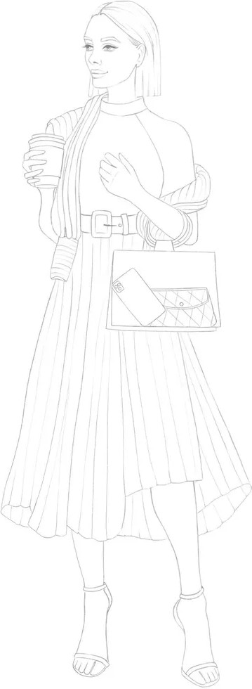 Потренировавшись в раскрашивании модных нарядов, ты сможешь перейти к следующему этапу - рисованию собственных моделей одежды в скетчбуках Outlines с контурами без одежды.