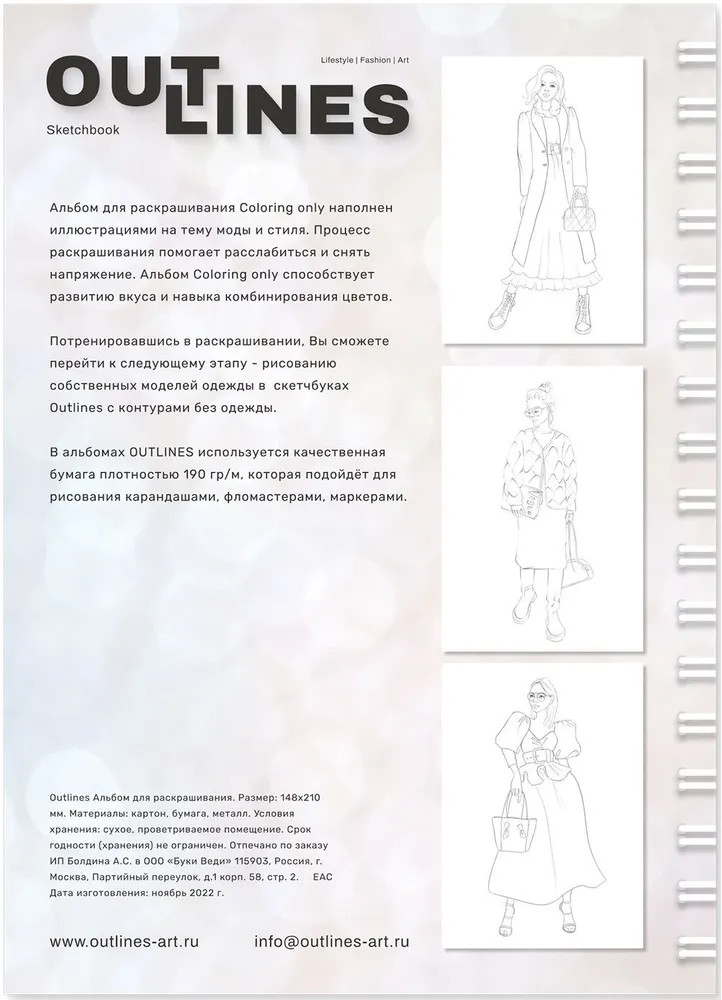 Раскраска OUTLINES Sketchbook Coloring Only Мода - настоящая находка для девочек, девушек, женщин, которые разбираются в моде и стиле, любят рисовать одежду и создавать уникальные образы моделей.