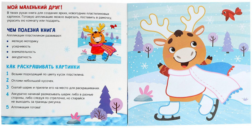 Серия: Новогодние книги Буква-Ленд Книга для аппликации пластилином направлена на развитие моторики, внимательности и аккуратности у малышей. |