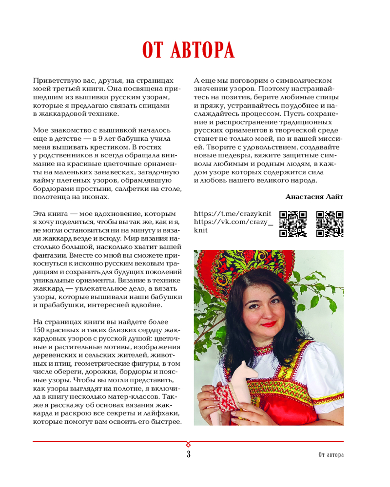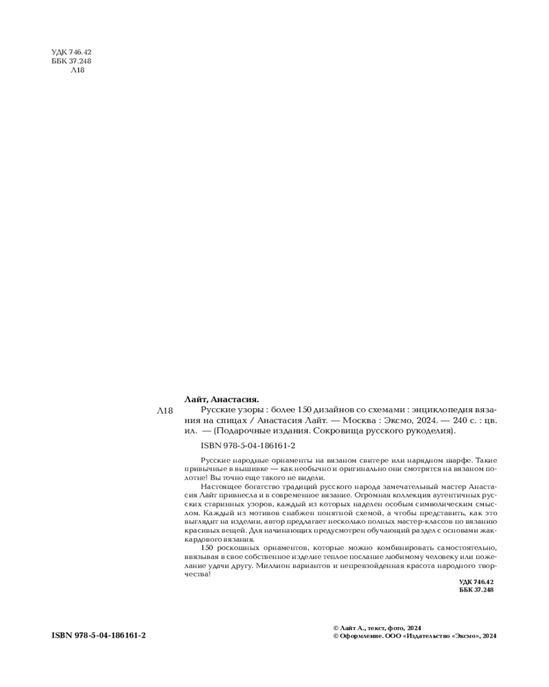 💳 Оплатить за товар можно при получении 🇰🇿 Есть бесплатная доставка по Казахстану от 1 дня 🎁 Копите бонусы с каждой покупки Серия: Подарочные издания. Сокровища русского рукоделия Новый тренд — возрождение старинных традиций в современной вязаной моде! «Вы прикоснетесь к исконно русским вековым традициям и сохраните для будущих поколений уникальные народные орнаменты. Вязание — увлекательное дело, а вязать узоры, которые вышивали наши бабушки и прабабушки, бесценно!» — так считает замечательный мастер Анастасия Лайт, и, более того, она уверена, что традиционные народные мотивы нашего народа должны сменить поднадоевшие уже, но до сих пор модные норвежские узоры в современном вязании. |