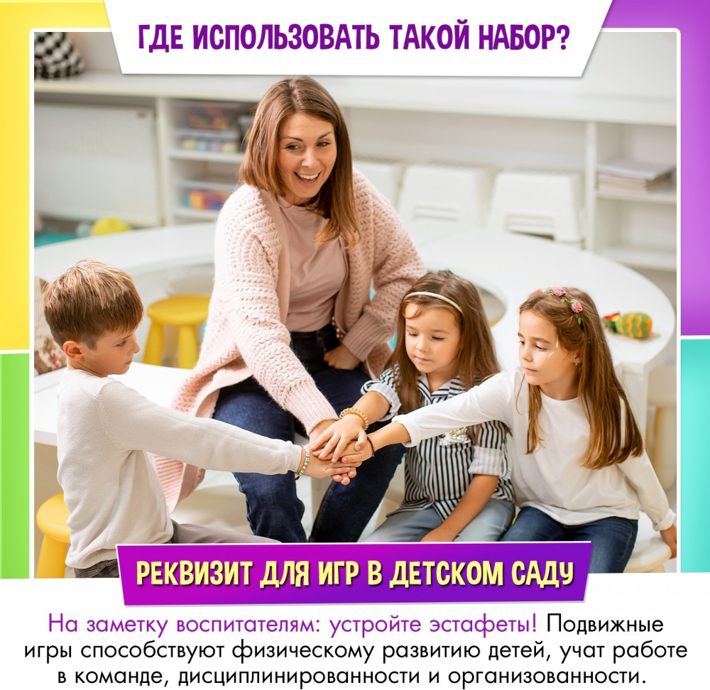«Диногонки» — набор для эстафеты для детей от 5 лет. Увлекательные соревнования увлекут маленького непоседу, зарядят энергией и отличным настроением. Озорные динозаврики поделятся на команды и будут выполнять интересные задания, чтобы узнать, кто самый ловкий и быстрый. С набором для эстафет ребёнок улучшит координацию, разовьёт командный дух, выносливость и ловкость.