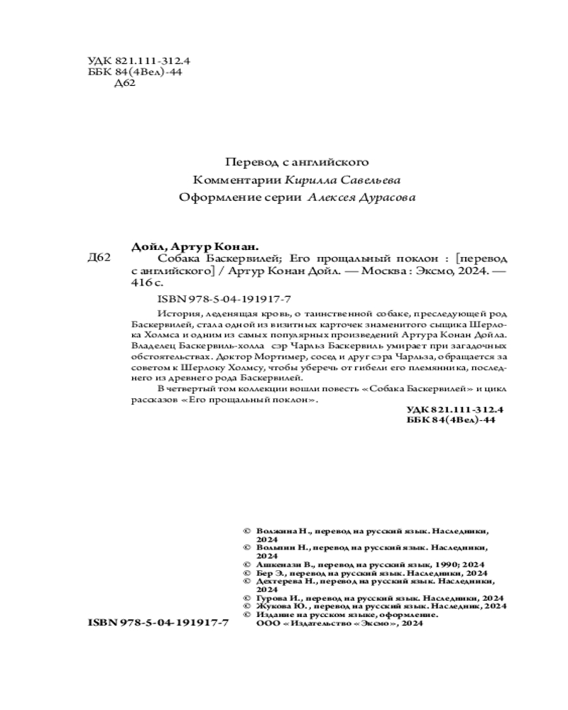 💳 Оплатить за товар можно при получении 🇰🇿 Есть бесплатная доставка по Казахстану от 1 дня 🎁 Копите бонусы с каждой покупки Серия: Яркие страницы. Коллекционные издания История, леденящая кровь, о таинственной собаке, преследующей род Баскервилей, стала одной из визитных карточек знаменитого сыщика Шерлока Холмса и одним из самых популярных произведений Артура Конан Дойля. Владелец Баскервиль-холла сэр Чарльз Баскервиль умирает при загадочных обстоятельствах. Доктор Мортимер, сосед и друг сэра Чарльза, обращается за советом к Шерлоку Холмсу, чтобы уберечь от гибели его племянника, последнего из древнего рода Баскервилей. Это издание является четвертой книгой о Шерлоке Холмсе в коллекционных изданиях «Ярких страниц», всего четыре тома. В него вошли повесть «Собака Баскервилей» и цикл рассказов «Его прощальный поклон» с комментариями переводчика Кирилла Савельева. Дизайн этого коллекционного издания серии «Яркие страницы» вдохновлен дагерротипами XIX века, форзацы и обрез запечатаны красивым узором. |